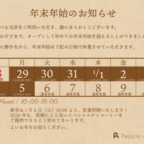 2026年も Roppin coffee をどうぞよろしくお願いいたします!